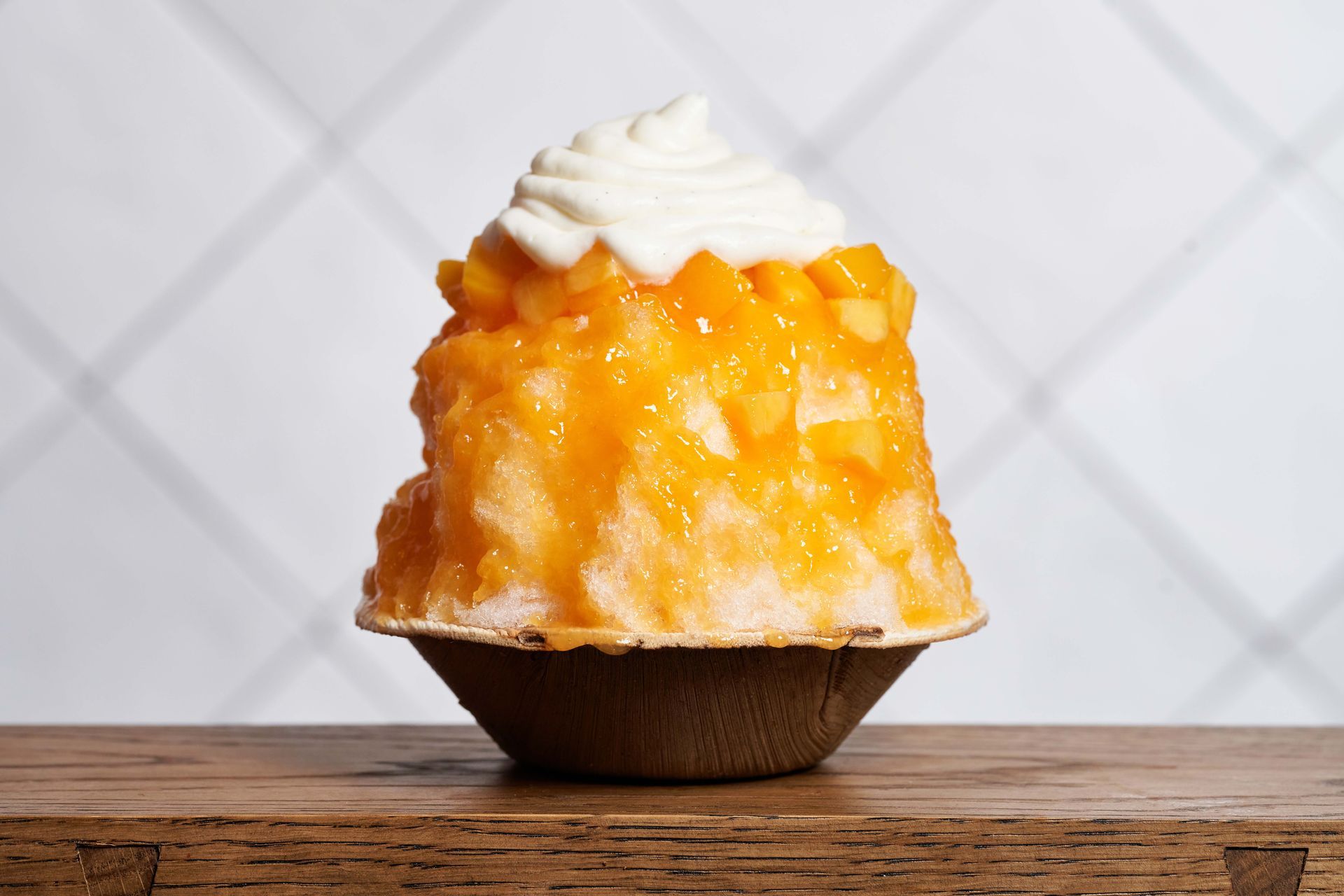 Kakigori is a beloved Japanese shaved ice dessert that has been enjoyed for centuries. Though generic Kakigori is a summertime staple at Japanese festivals, the dish has been elevated to an art form in many dessert shops around Japan. Unlike the typical shaved ice found in snow cones or snowballs, modern craft Kakigori is known for its incredibly light and fluffy texture, achieved by finely shaving high density purified ice blocks with precision.